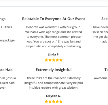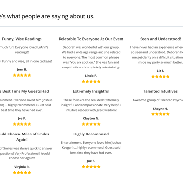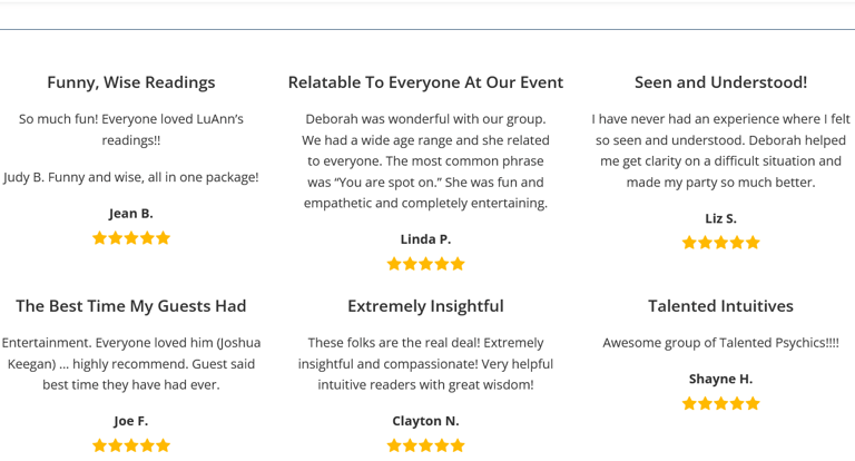 Our readings are thoughtful and uplifting. Guests leave feeling encouraged and intrigued rather than unsettled.